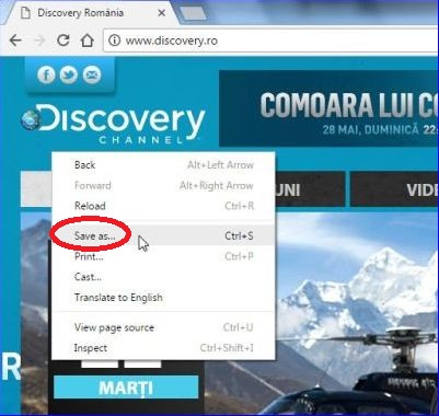 - salvarea unei pagini-web din Internet în calculator cu Google Chrome :