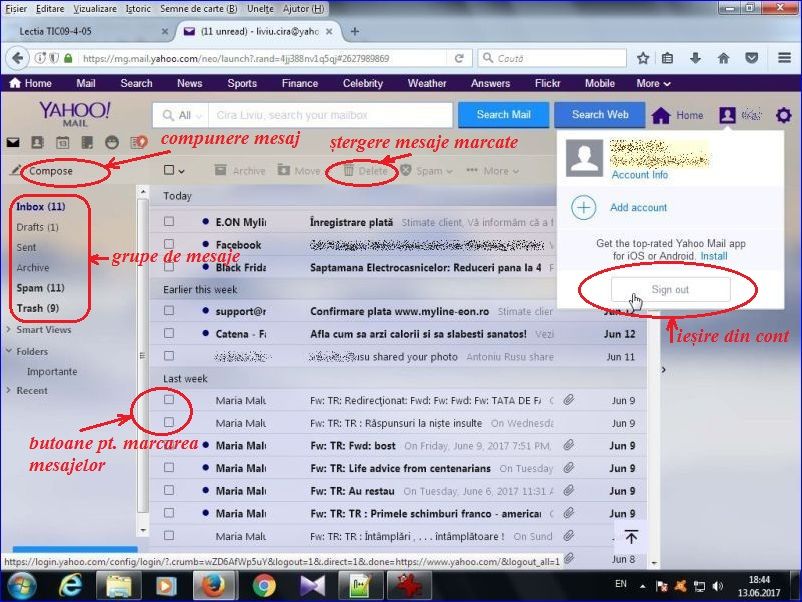 - Intrați cu browserul într-un cont de e-mail yahoo.com sau gmail.com