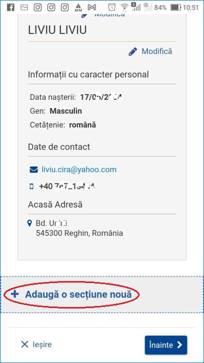 - după ce am selectat una dintre secțiunile dorite, trebuie să o completăm cu Adaugă secțiune