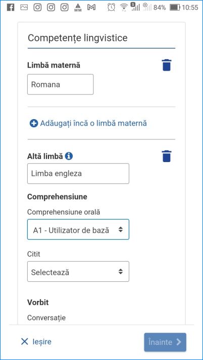 - obținem CV-ul completând formularul de la linkurile : https://europa.eu/europass/ro