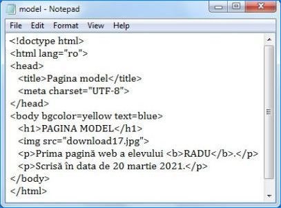 - Salvați pagina în directorul de lucru cu numele nume_elev.html și Encoding: UTF-8.