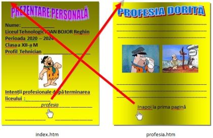 - în directorul de lucru creați două pagini care au obligatoriu numele index.htm, profesia.htm, conform schemei :